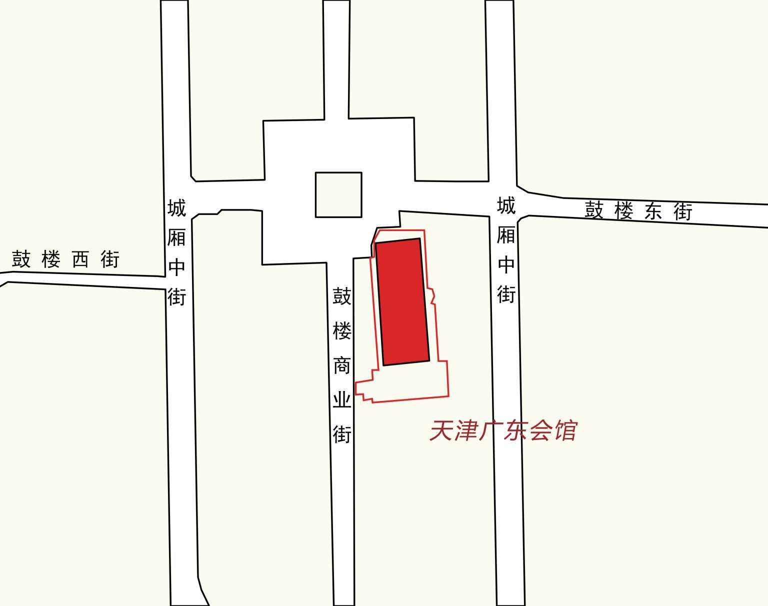 天津广东会馆建于 1907 年,是广东旅津人士设立的集聚会、办公、休养、食宿于一体的民间组织,位于天津老城中心鼓楼东南侧。1860 年,天津开埠通商后,逐渐发展成为当时华北地区的工商业中心。一批广州和香港的买办随外国商船来津。同时,洋务运动中清朝政府选派出国的留学生也陆续学成回国,落脚天津。众多广东籍人士云集天津,广帮势力逐渐壮大。1903 年,在时任天津海关道、旅津广东人唐绍仪(第三批留美幼童)的倡建下,广东旅津人士筹集白银 9 万余两建成广东会馆。广东会馆是清代天津 20 多处会馆中,规模最大、功能最齐备、建筑最精美的一处。