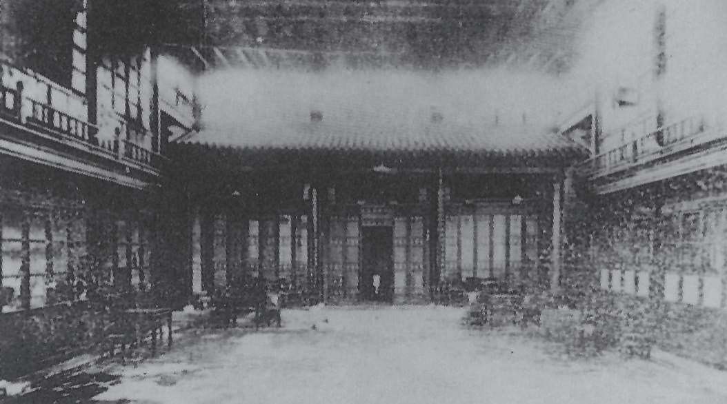 天津总商会原建筑建于 1908 年,占地面积近 1 000 ㎡,入口设拱券门廊。主体建筑是一座三进四合院,分为前院、议事厅和后院。内院正房为议事厅,是一座典型的清末罩棚式会馆建筑,厅前设游廊,大厅上方设玻璃天窗,室内光线明亮。