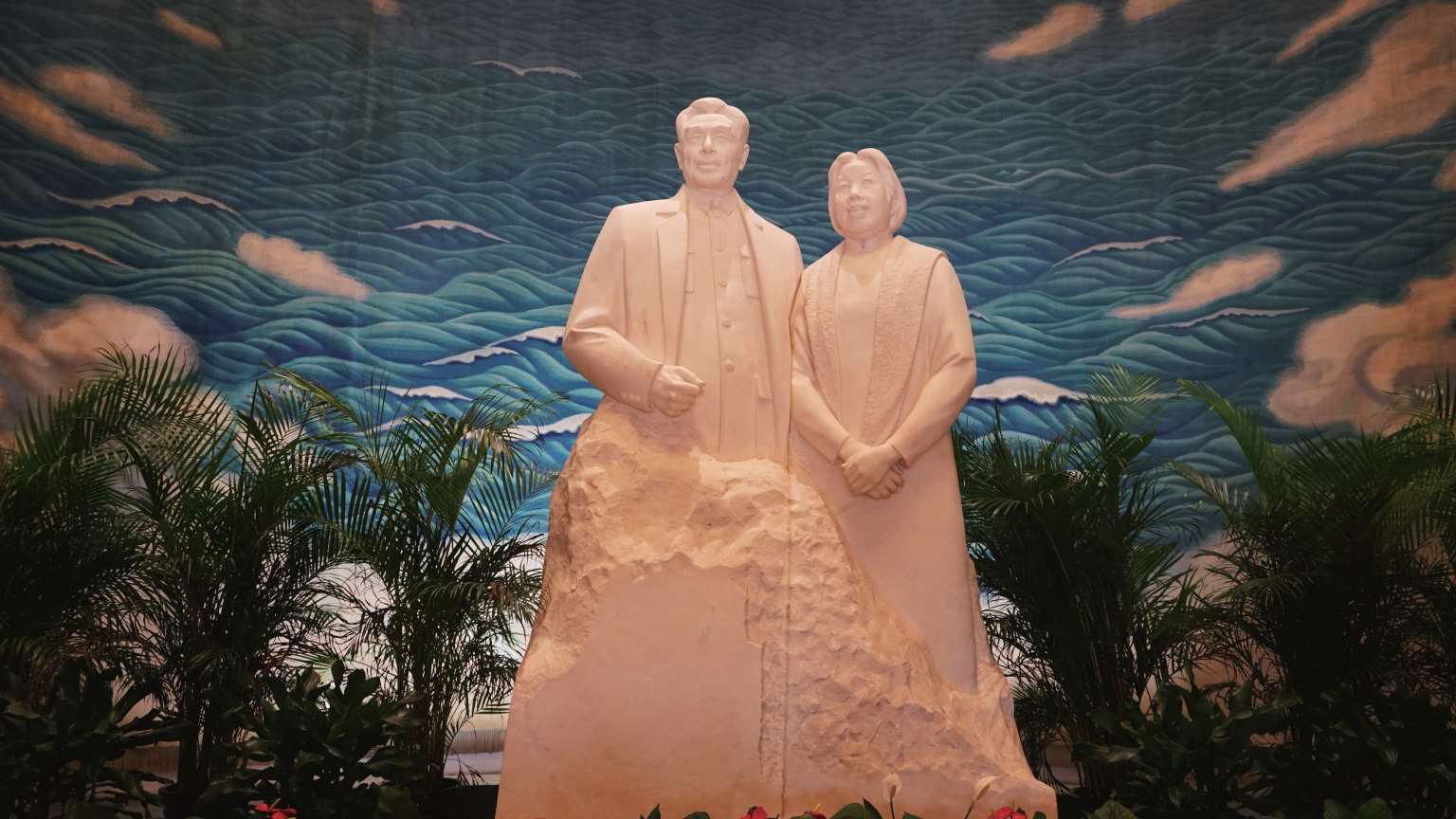 ◎ 周恩来邓颖超纪念馆内汉白玉雕像《情满江山》