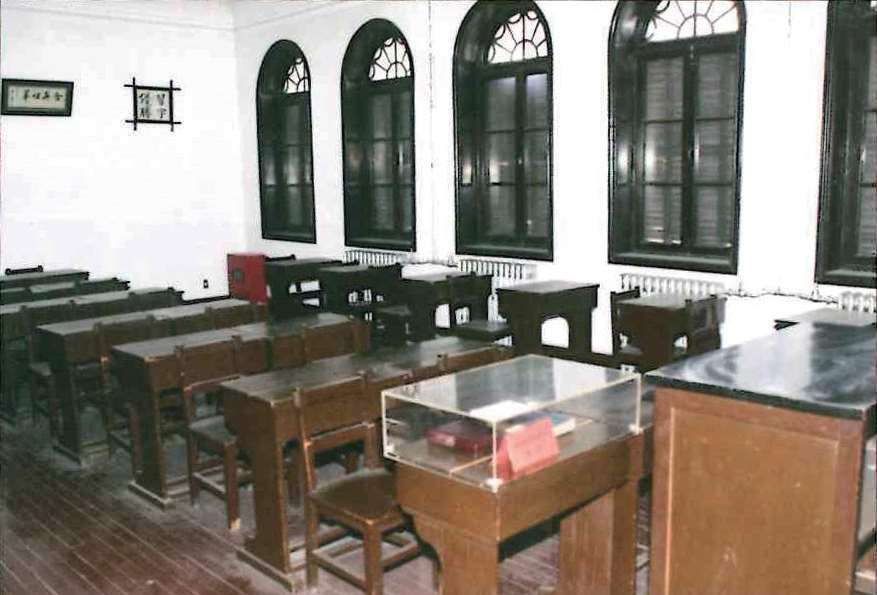 南开学校北楼建于 1913 年,为二层砖木结构楼房,青砖外檐。首层设罗马式连拱外廊,二层设连续拱券窗,并带有简单细节设计,使立面产生对比效果。