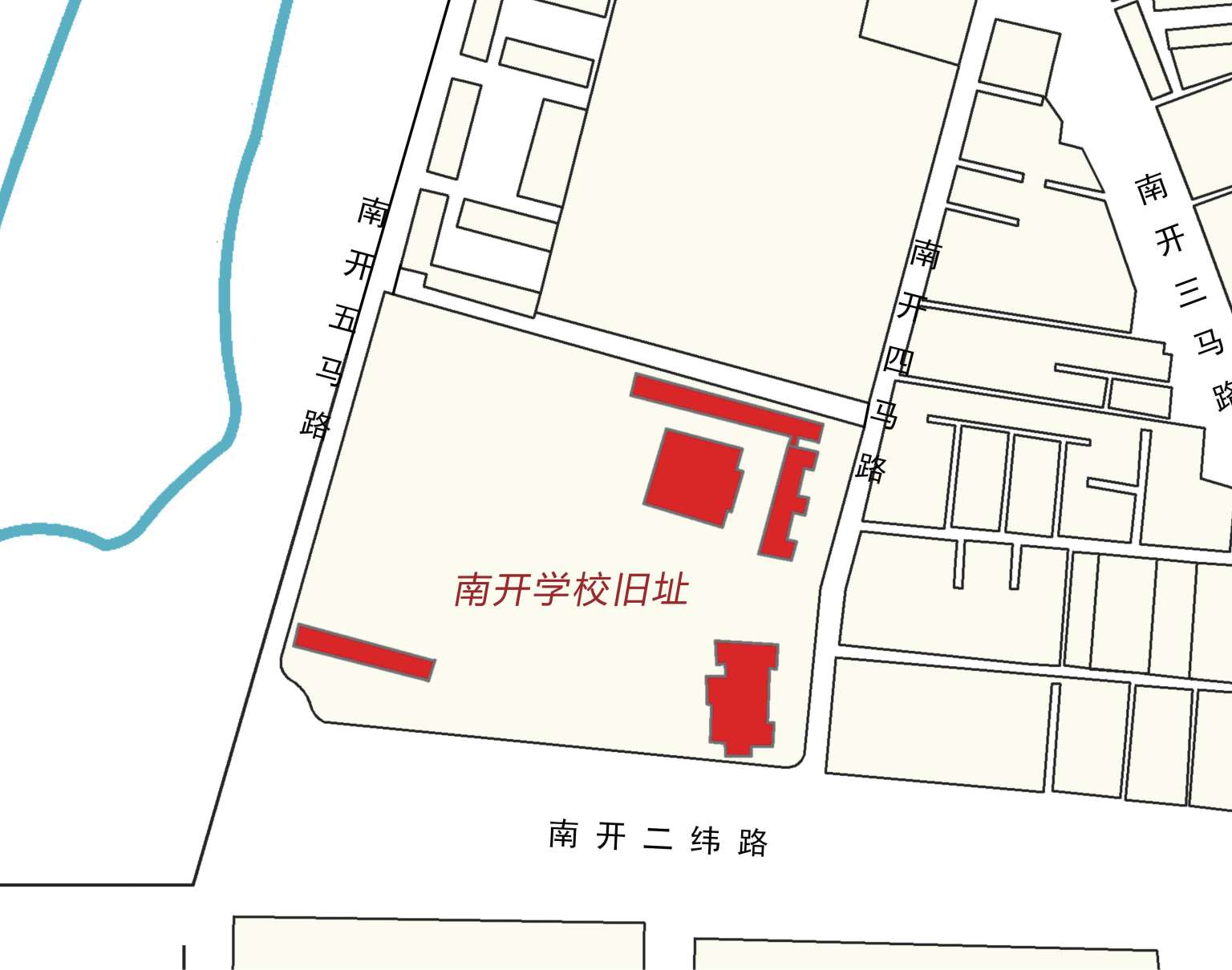 南开学校旧址现存文物建筑有东楼、北楼、南楼、礼堂、西斋宿舍等。现为全国重点文物保护单位,特殊保护等级历史风貌建筑,第一批天津市革命文物。