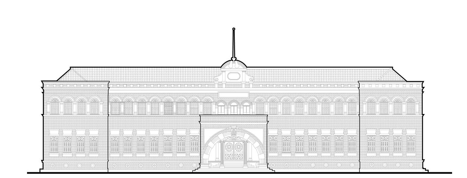 南开学校东楼(今伯苓楼)建于 1906 年。建筑坐西朝东,二层砖木结构,带地下室,青砖外檐,坡屋顶,建筑面积 952 ㎡。建筑立面采用古典段落划分构图,对称布局。砖砌拱券门厅以爱奥尼克柱式支撑,拱顶石、拱肩的“南”“开”两字及丰富纹饰,形成标志性的门楣中心。首层设长方形窗,二层设有连续罗马式拱券窗,以红砖壁柱支撑。二层中间三个拱券稍小,以爱奥尼克柱式支撑。屋顶中央是巴洛克式三角形断山花,两侧带有涡卷,在强调立面对称构图的同时,也丰富了建筑天际线。山花上的龙纹、女儿墙腰部的“卍”字纹饰,以及门廊拱肩的传统纹样,都呈现出中西合璧的装饰特征。建筑在传统对称、段落划分的同时,博采各种建筑形象并自由组合,呈现出典型的折中主义风格。求学南开时期周恩来曾在东楼东四讲室读书。