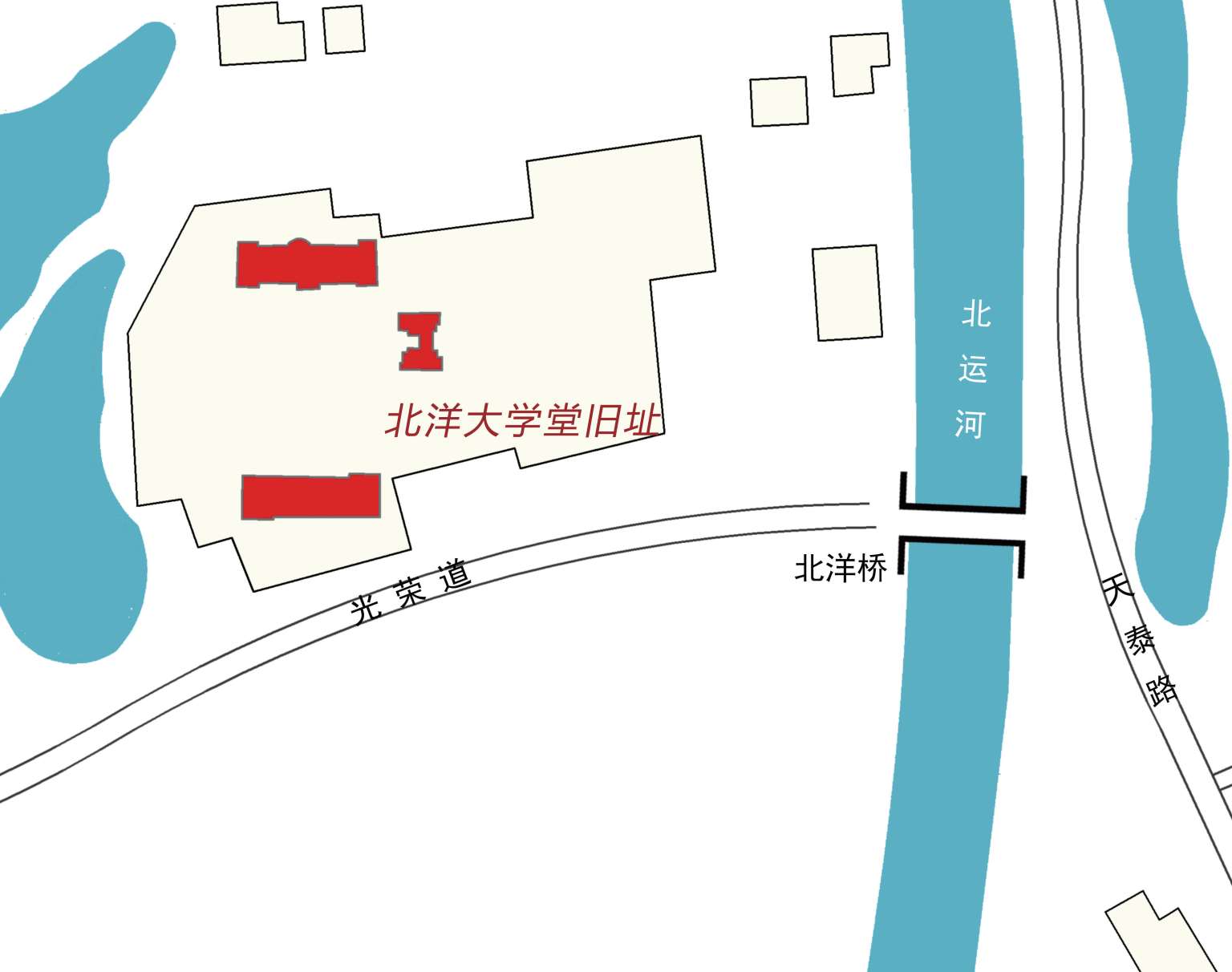 北洋大学堂旧址现存 3 座早期建筑,即原北洋大学堂北楼、团城、南楼。现为全国重点文物保护单位,重点保护等级历史风貌建筑。