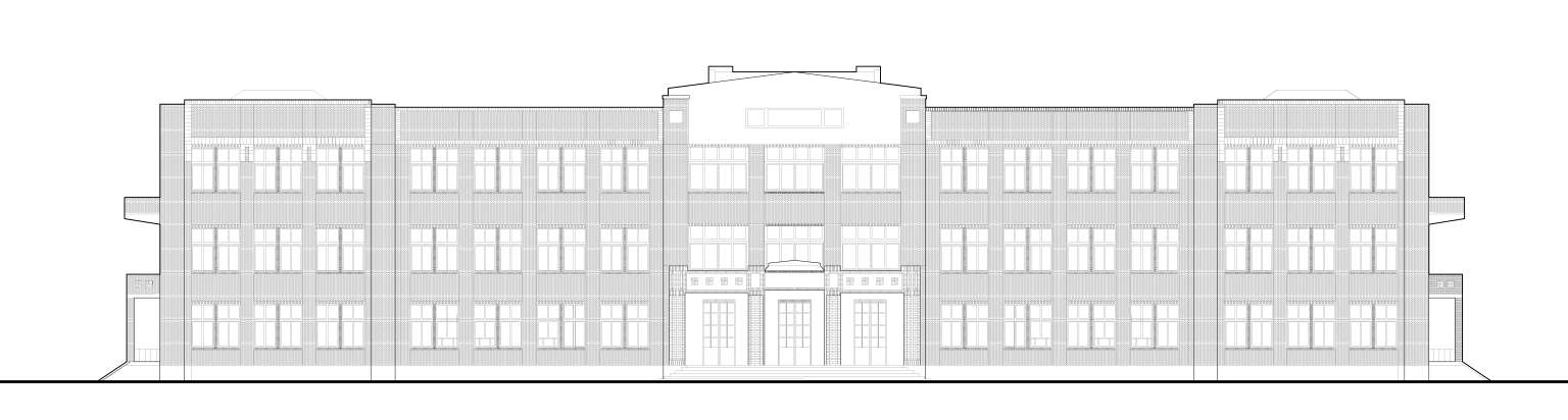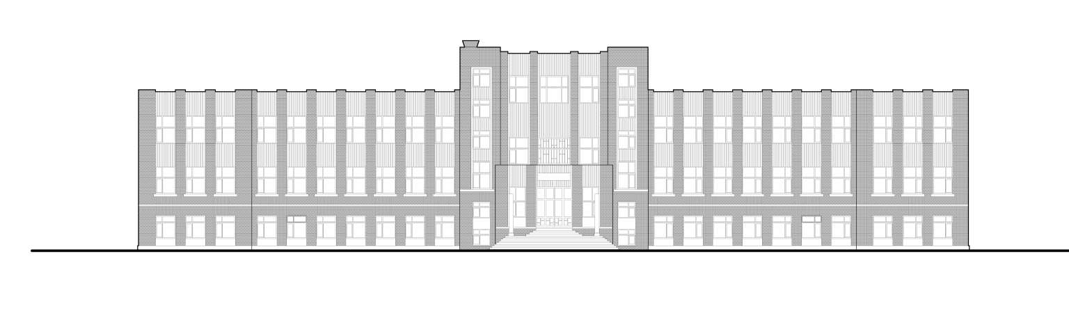 北楼建于 1936 年。建筑坐北朝南,主体为 3 层砖混结构,外檐为红砖清水墙面,局部为混水墙面。建筑采用对称布局,中间局部高起。设计立面强调竖向构图,用红砖砌筑形成贯穿二层的竖向划分,间以简洁竖向纹饰,入口门廊重复竖向构图,具有装饰艺术风格特征。