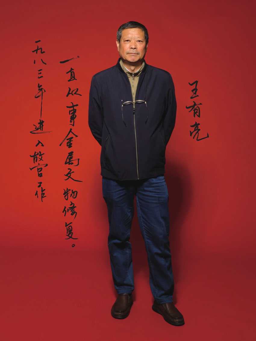 王有亮,故宫博物院研究馆员,青铜器修复专家。1983年至今就职于故宫博物院文保科技部,师从青铜器修复大家赵振茂先生,从事青铜器及金属文物的修复保护工作40余年,修复了多件青铜重器,2012年被评为“青铜器修复及复制技艺”国家级非物质文化遗产代表性传承人。