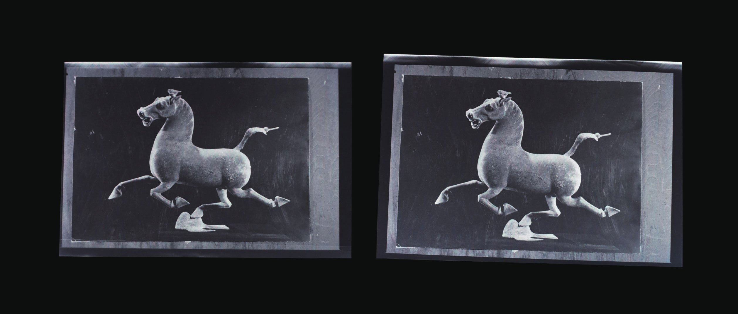 刚刚出土不久的马踏飞燕,马的嘴上还有残存的朱砂红色,翁乃强摄于1970年