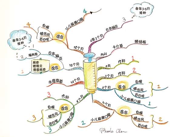 图序言-1 孩子打预防针的思维导图(陈资璧 绘)