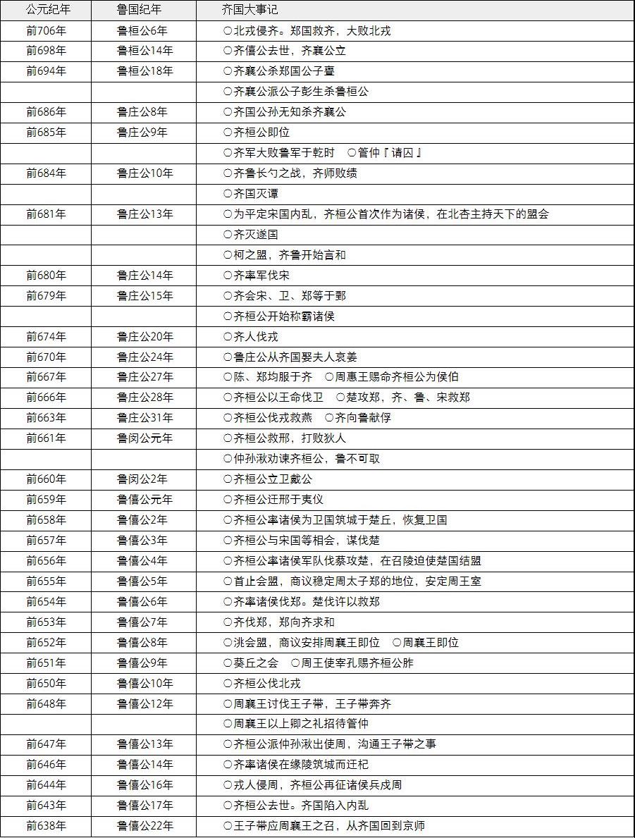 齐国部分国君顺序