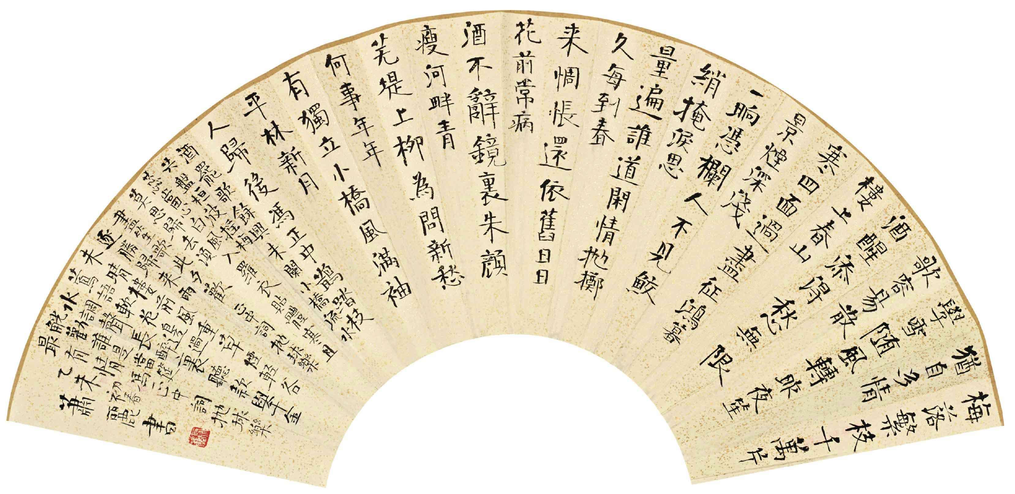 梅落繁枝千万片,犹自多情,学雪随风转。昨夜笙歌容易散,酒醒添得愁无限。 楼上春山寒四面,过尽征鸿,暮景烟深浅。一晌凭栏人不见,鲛绡掩泪思量遍。