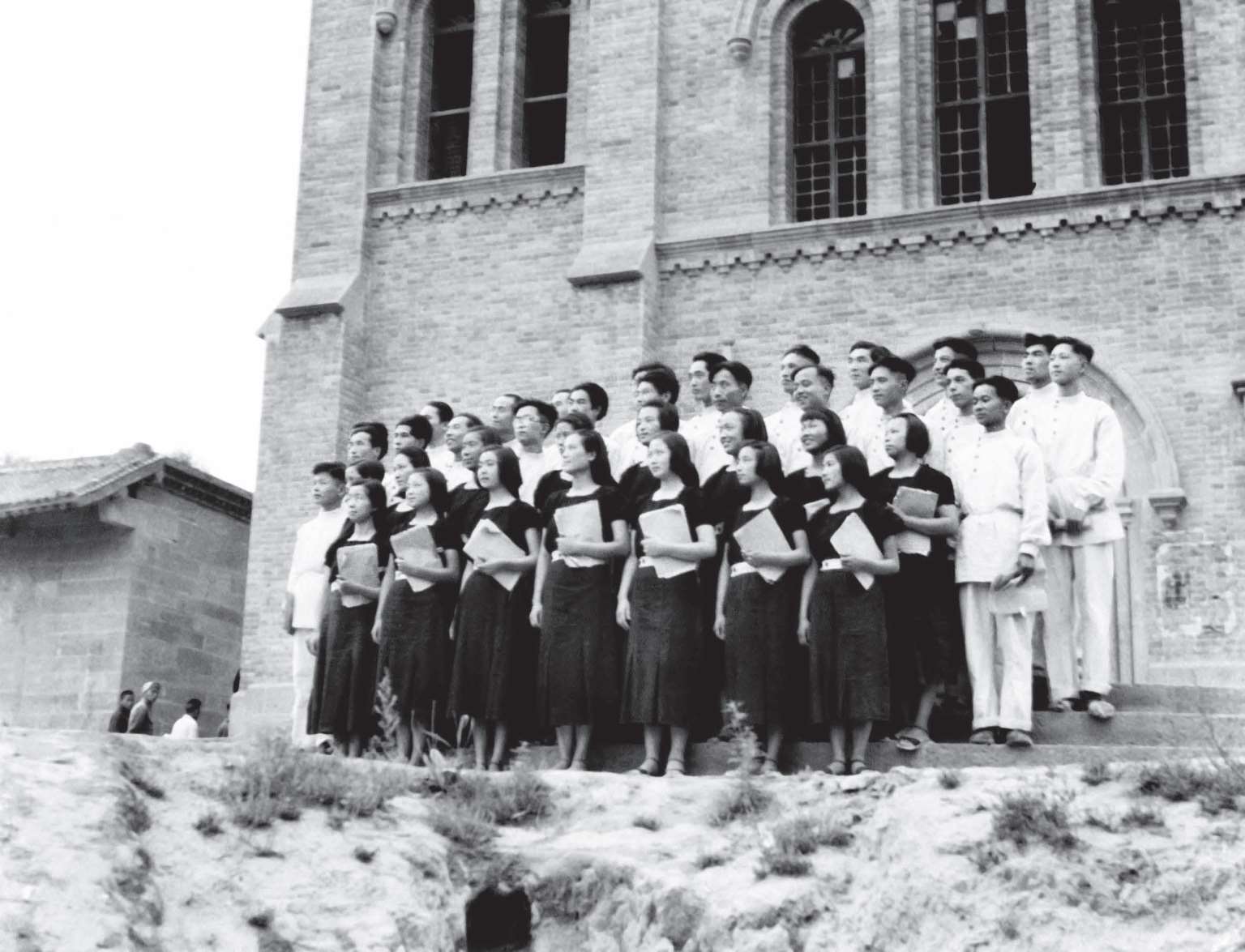 1942 年,延安鲁迅艺术学院合唱队首次演出人民音乐家冼星海的《黄河大合唱》。