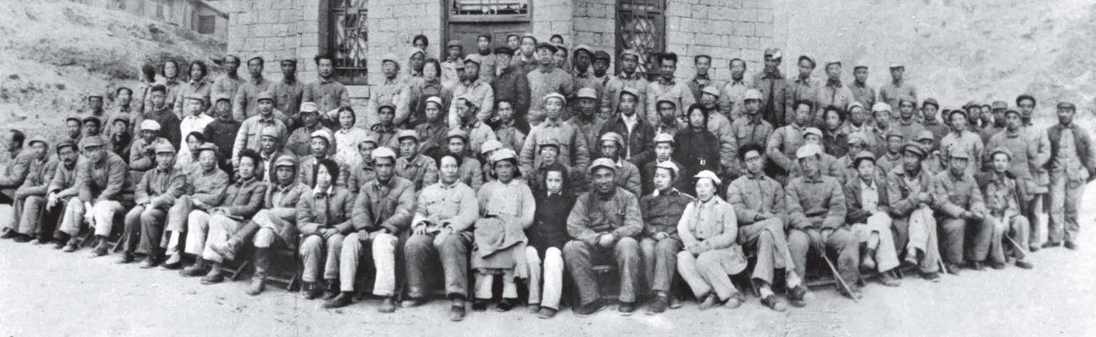 1942 年 5 月 2 日至 23 日,中共中央在延安杨家岭召开文艺工作者座谈会,史称延安文艺座谈会。延安文艺座谈会深刻影响了 20 世纪中国文艺的发展轨迹。毛泽东提出了文艺为什么人服务和如何服务的问题:为什么人的问题是一个根本的问题、原则的问题。我们的文艺,是为最广大的人民大众服务的。图为毛泽东、朱德等中央领导同志与参加延安文艺座谈会的文艺工作者们合影。