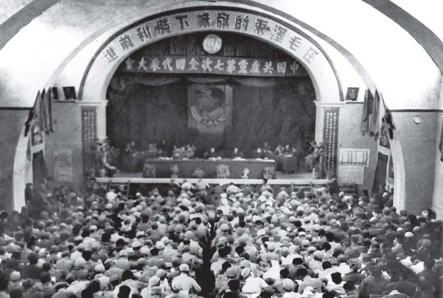 1945 年 4 月 23 日,在长达 11 个月的六届七中全会结束的第三天,中共七大终于开幕了。出席大会的 547 名正式代表和 208 名候补代表,肩负着全国 120 万党员的重托,充满信心地走进延安杨家岭中央大礼堂。