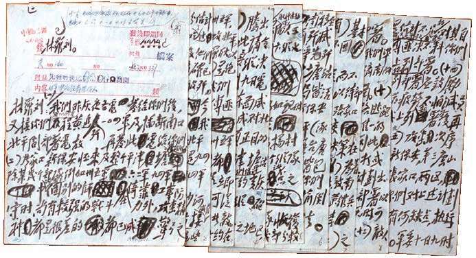 毛泽东起草的关于辽沈战役、淮海战役、平津战役作战方针电报的手稿。