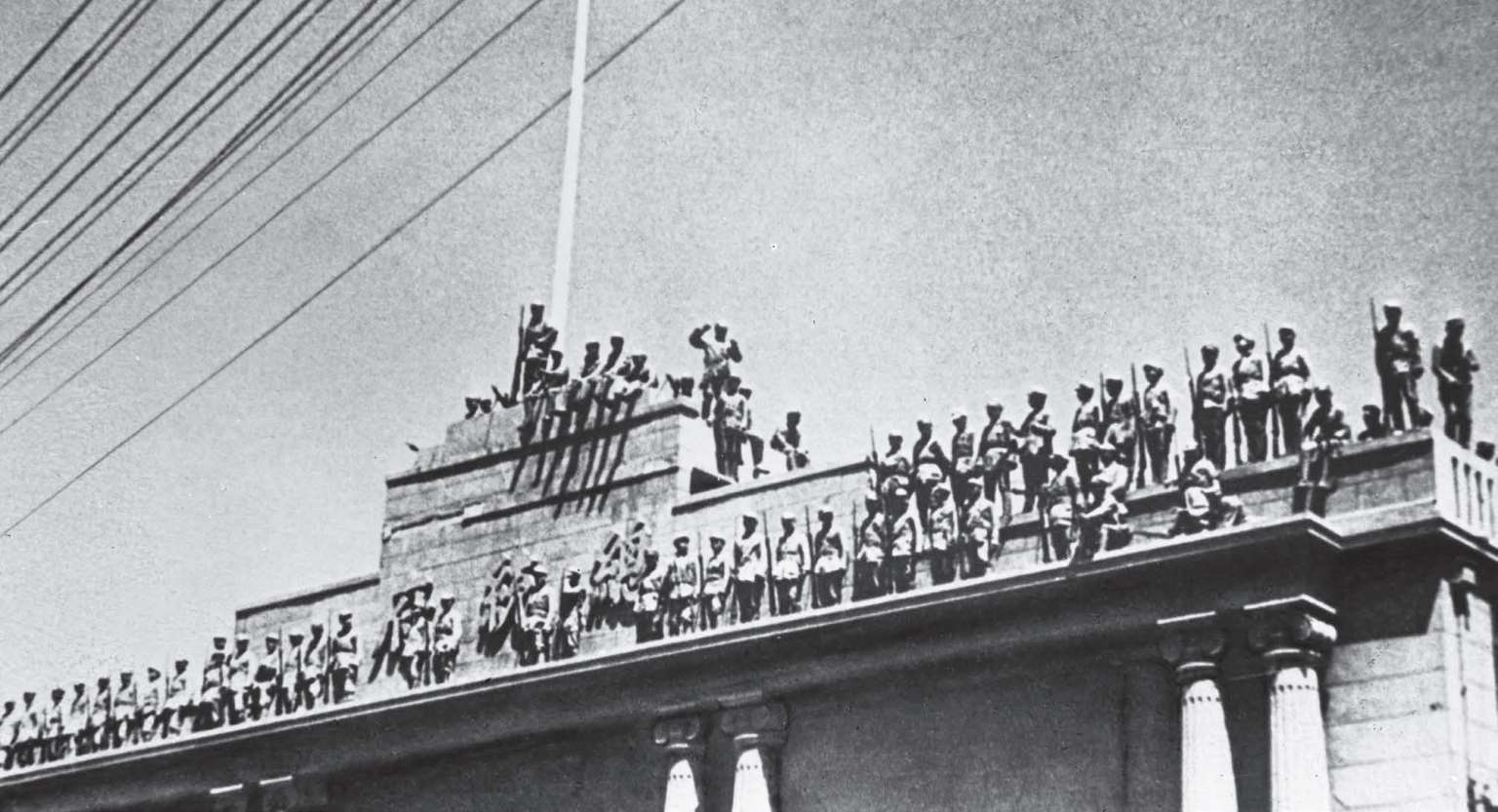 1949 年 4 月 23 日,解放军攻占南京,宣告国民党反动统治覆亡。图为入城部队占领南京“总统府”后留影。