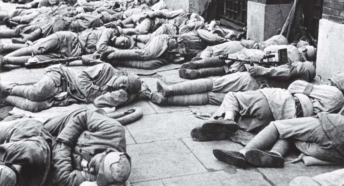 1949 年 5 月 27 日,解放军战士解放上海后,不惊扰上海市民,不住民房,露宿街头。
