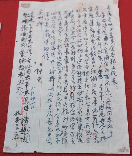 中国共产党第四次全国代表大会史料陈列馆馆内陈列的一份中共中央关于召开四大的通知的仿真件。