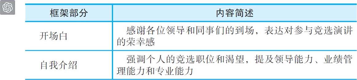 下面利用四步模型,继续在同一对话框中提问,看看ChatGPT能否根据上一章的竞选演讲稿,梳理出一个好的框架。