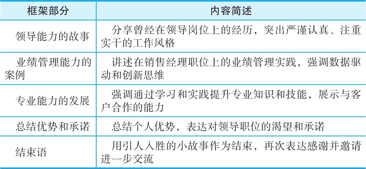 演讲内容分为不同的部分,每个部分都有简明的描述,以帮助你更好地记住整个演讲稿的结构和内容。记住这个框架,可以让你在演讲时更流畅地过渡到下一个部分,并确保你覆盖了所有关键的信息。