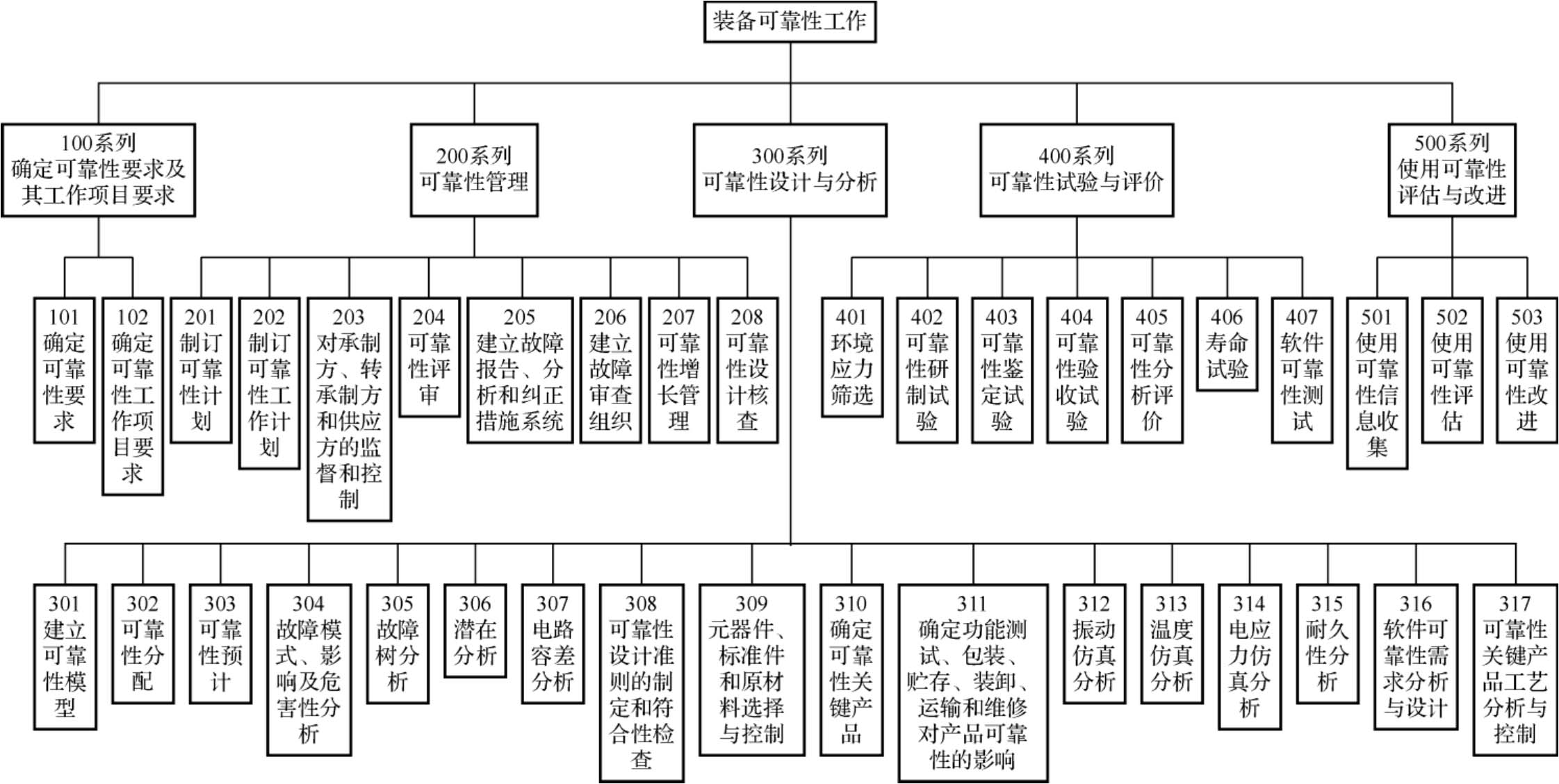装备可靠性工作贯穿装备寿命周期,从论证立项、工程研制到列装定型,涉及原材料、元器件、设备、软件、系统和装备体系等各个方面。