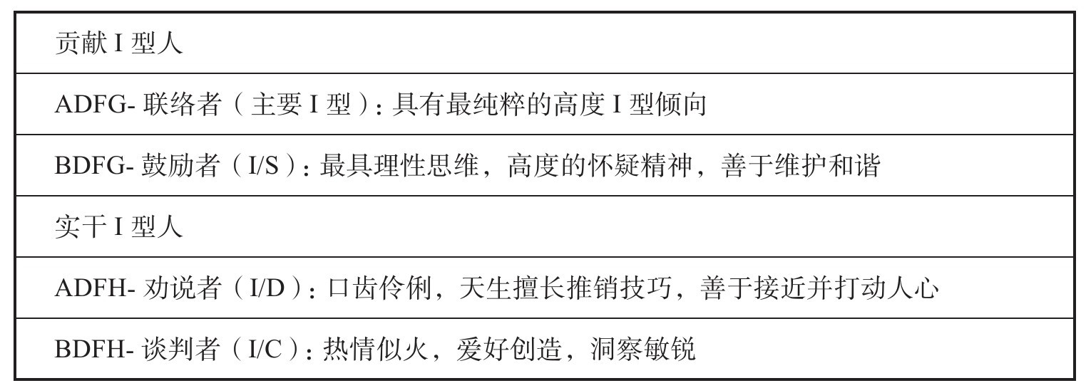 具有这种行为模式的人,注重带动他人与自己合作,以实现目标,塑造自身环境。同时这种个性注重培养人际关系,而不是单纯地完成任务(见表2)。