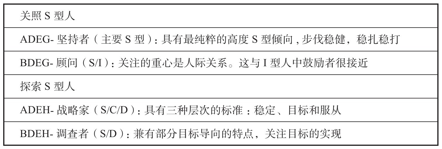 表3 S型人格代表模式