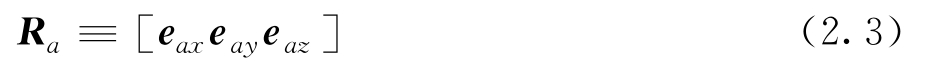 因为是围绕 x 轴的旋转,所以只有 e ay 、 e az 发生变化。将三个向量汇总后的3×3矩阵 R a 定义如下。