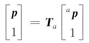 这样的矩阵称为同次变换矩阵 [2] 。同次变换矩阵 T a 将手臂的局部坐标系表示的点的坐标变换到世界坐标系。