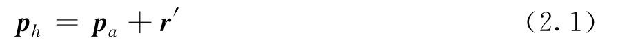 肩部的位置 p a 保持不变,通过向量 r 向 r ′的旋转可以实现手指尖的运动。