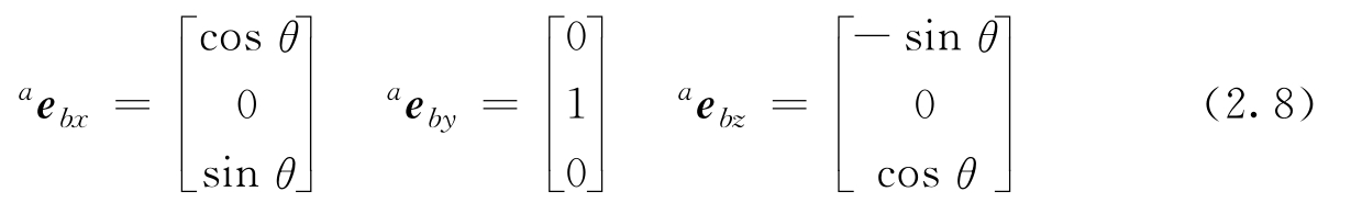胳膊关节围绕 y 轴旋转,因此只有 a e bx 和 a e bz 会发生变化。此外,这些向量都以Σ a 为基准定义,因此左上方会加上字母 a 。