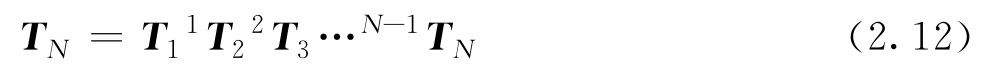 将上述内容推广,Σ b 到Σ n 的局部坐标系具有依次连接的机理。毗邻坐标系Σ i 和Σ i +1 之间的同次变换矩阵可以用下式表示。