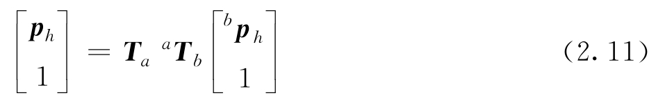 把式(2.11)右边的同次变换矩阵的乘积归纳为 T b ,可得