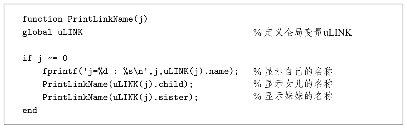 显示数据结构中保存的所有连杆名称的程序PrintLinkName.m如图2.17所示。
