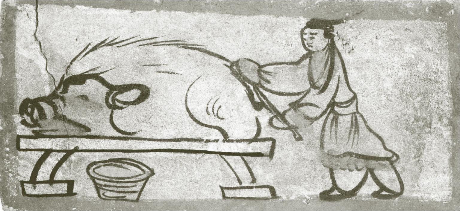 嘉峪关魏晋六号墓室壁画《宰猪图》