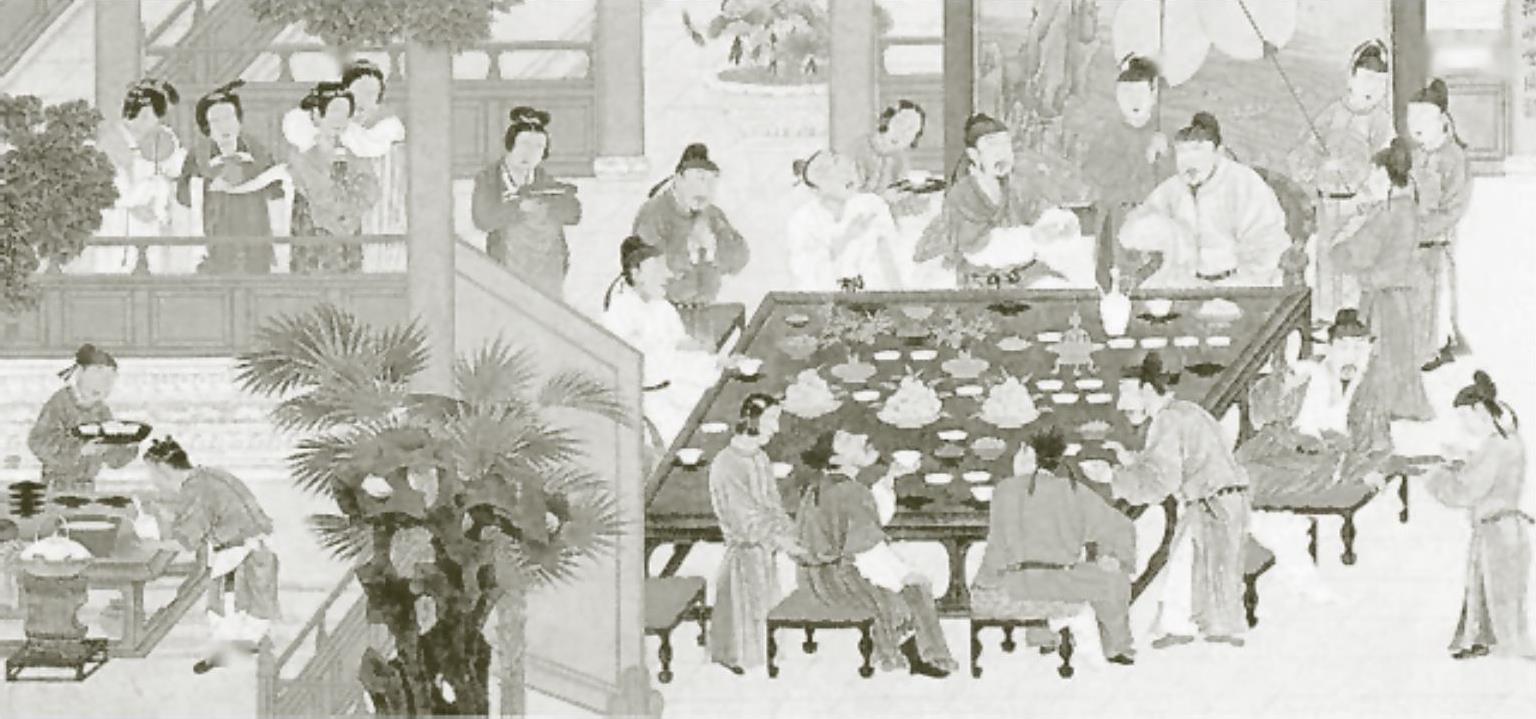 明初时太常寺的厨役人数是明朝后期的十分之一,就连以奢侈闻名的江南地区,菜肴也是以八盘为限,四人合坐一桌,成一席。