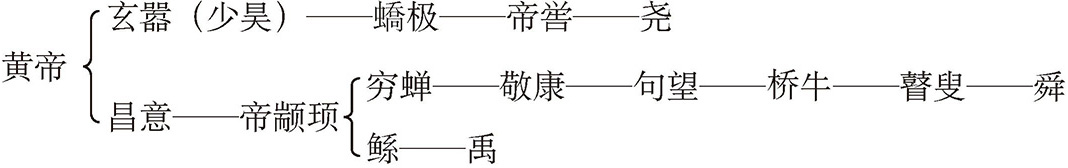 [1] 据《史记·五帝本纪》和《大戴礼记·帝系姓》,五帝的系图如下。其间代数,或不足信,说颛顼以后,都出于黄帝,大约是不诬的。因为古代天子、诸侯、卿、大夫的世系,都有专记他的史官,即《周官》小史之职。