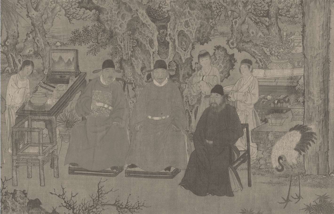 [明]谢环《杏园雅集图》(局部)左起:少詹事王直、少傅杨士奇、大学士杨荣