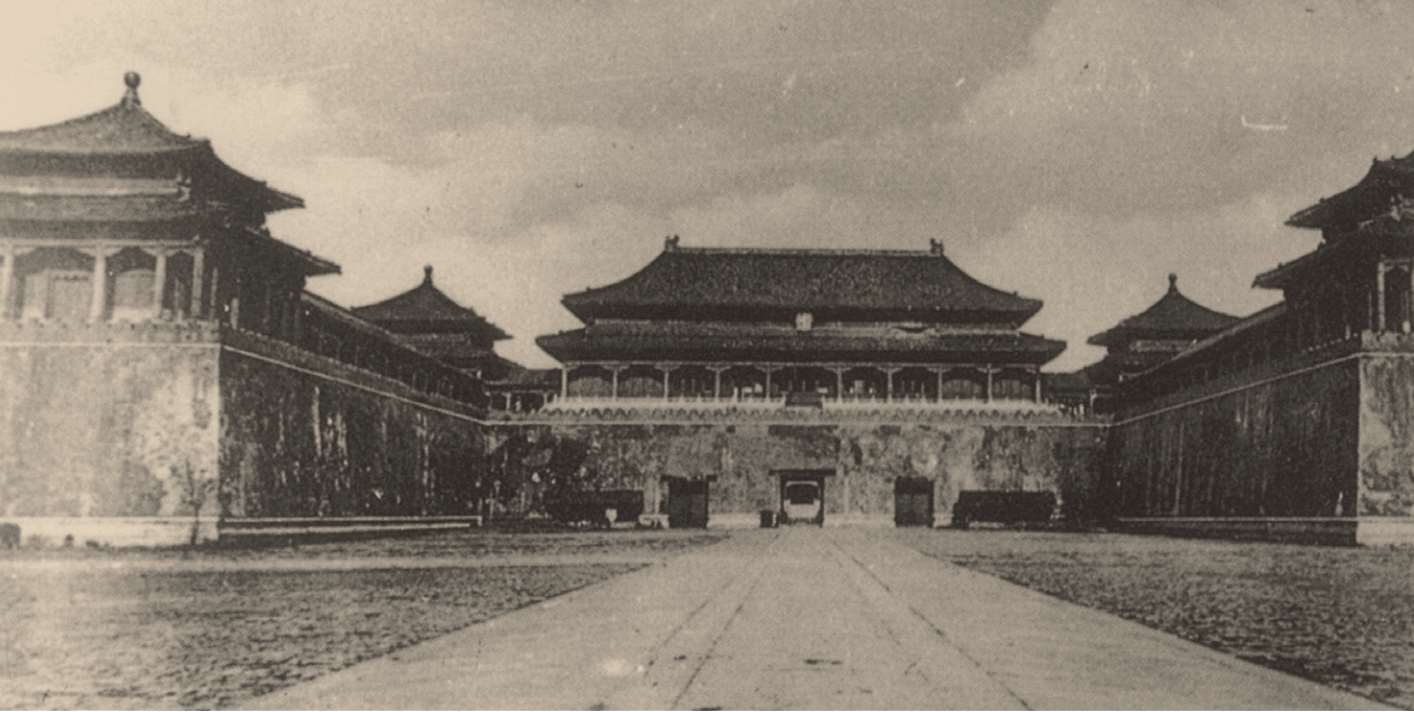 紫禁城的南门。建于明永乐十八年(1420),清顺治八年(1651)、嘉庆六年(1801)重修。平面呈“凹”字形,墩台高 12米,正中有三门,两侧各有一个东西向的掖门,为“明三暗五”。