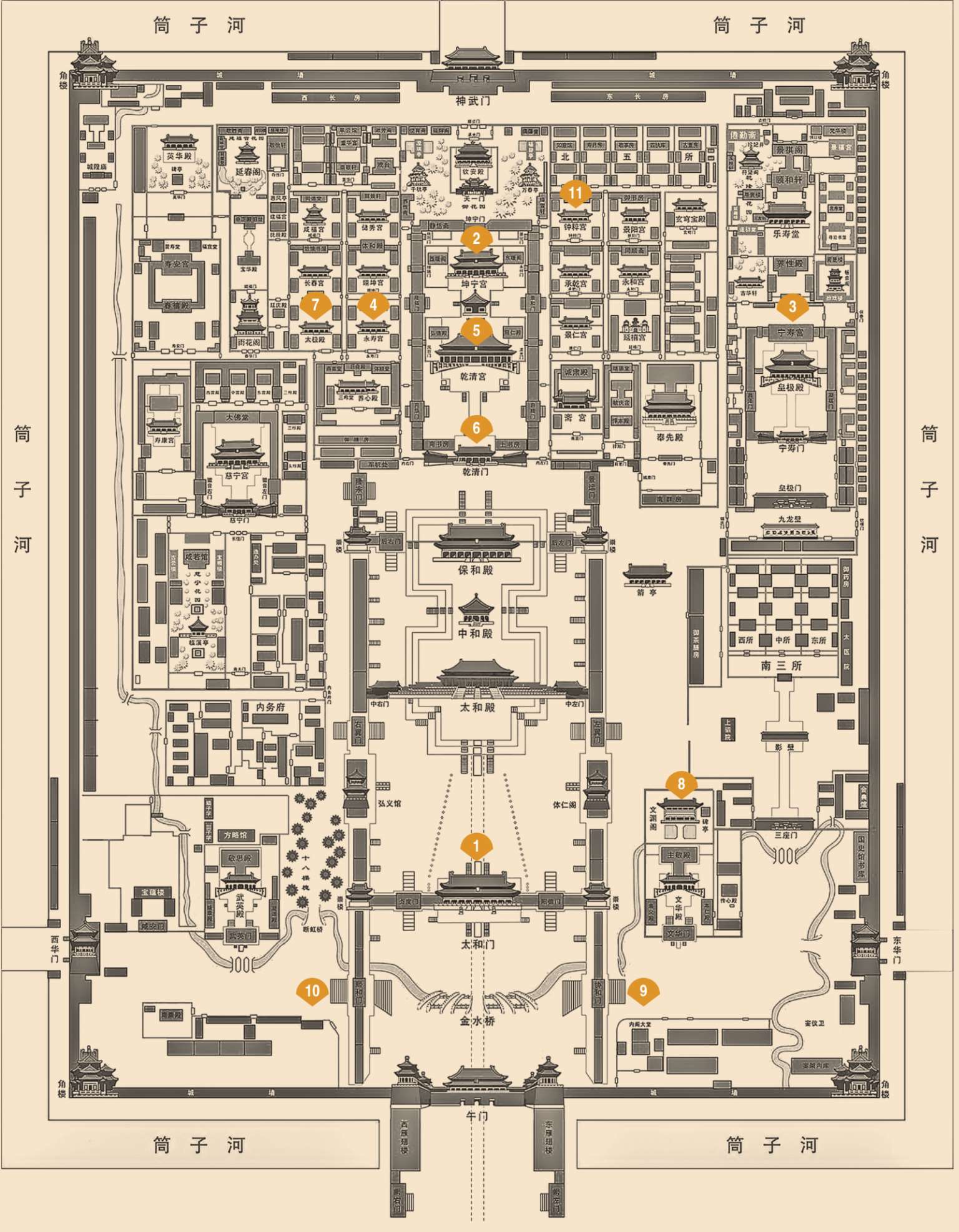皇宫的主人是明代宗朱祁钰景泰帝(在位 8 年)、英宗朱祁镇天顺帝(在位 8年)、宪宗朱见深成化帝(在位 23 年)、孝宗朱祐樘弘治帝(在位 18 年)、武宗朱厚照正德帝(在位 16 年)、世宗朱厚熜嘉靖帝(在位 45 年)、穆宗朱载垕隆庆帝(在位 6 年)七朝,共 122 年[景泰元年(1450)至隆庆六年(1572)]。这个时期,明朝虽表面强大繁盛,却已经开始显露衰势。