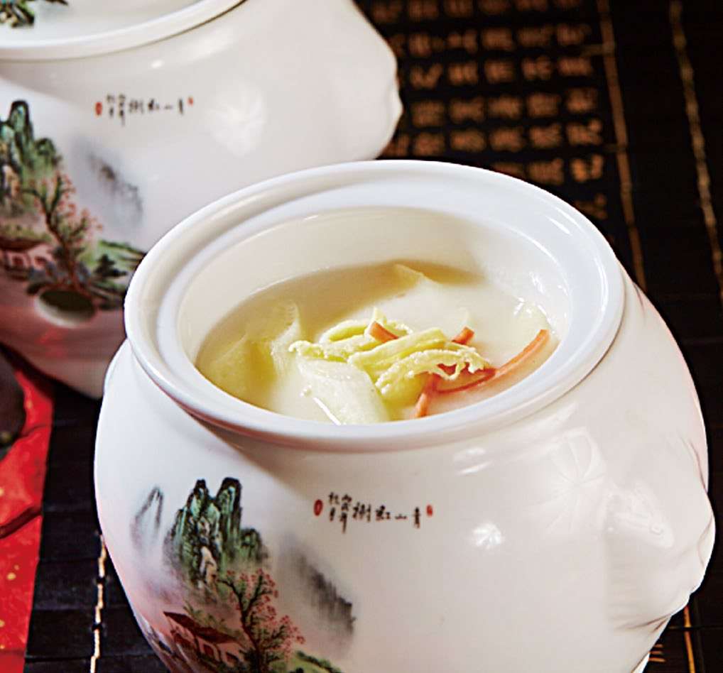 调料: 料酒5克,姜汁10克,葱椒绍酒25克,鸡精2克,盐3克,猪油50克,水淀粉、植物油各适量,清汤750克