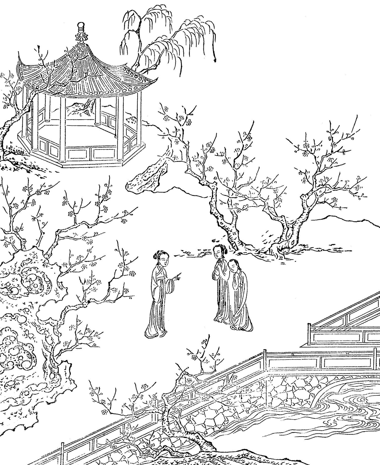 今日暮春天气,好生困人,不免唤红娘出来分付他。红娘何在?(旦俫扮红见科)(夫人云)你看佛殿上没人烧香啊,和小姐闲散心耍一回去来。(红云)谨依严命。(夫人下)(红云)小姐有请。(正旦扮莺莺上)(红云)夫人着俺和姐姐佛殿上闲耍一回去来。(旦唱)