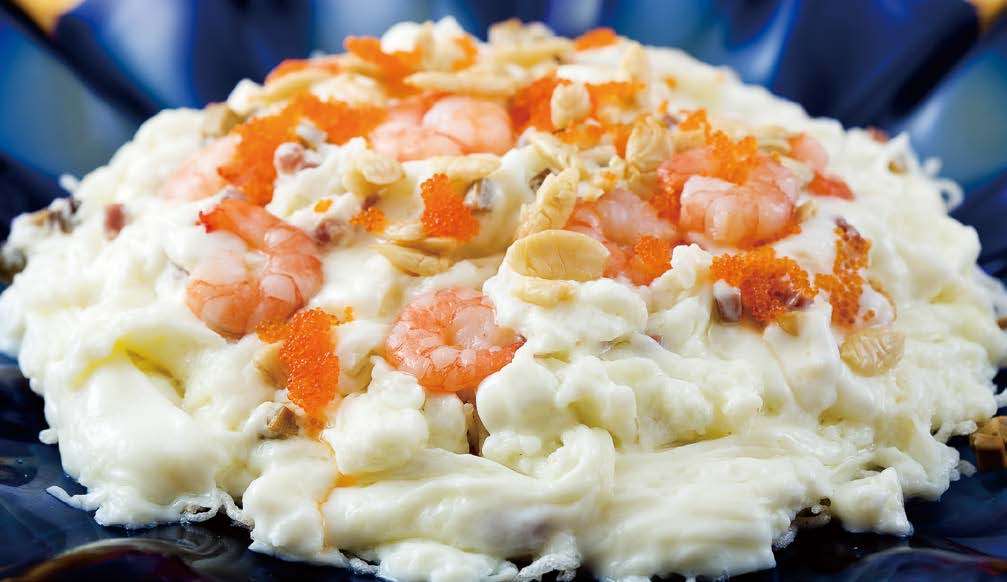 把液态的牛奶翻炒至凝固,这似乎是个神话,也像魔术师所变的戏法。是的,广东顺德大良的厨师是“魔术师”,他们就能把牛奶翻炒至凝固,放在盘内可以堆成一座“小雪山”。不仅如此,“小雪山”上面还镶嵌着蟹肉、虾仁、鸡肝、橄榄仁和火腿蓉等各种鲜嫩香口的食材。这,就是粤菜经典名菜——大良炒牛奶。“大良炒牛奶”起源于广东顺德大良镇,故以“大良”命名。