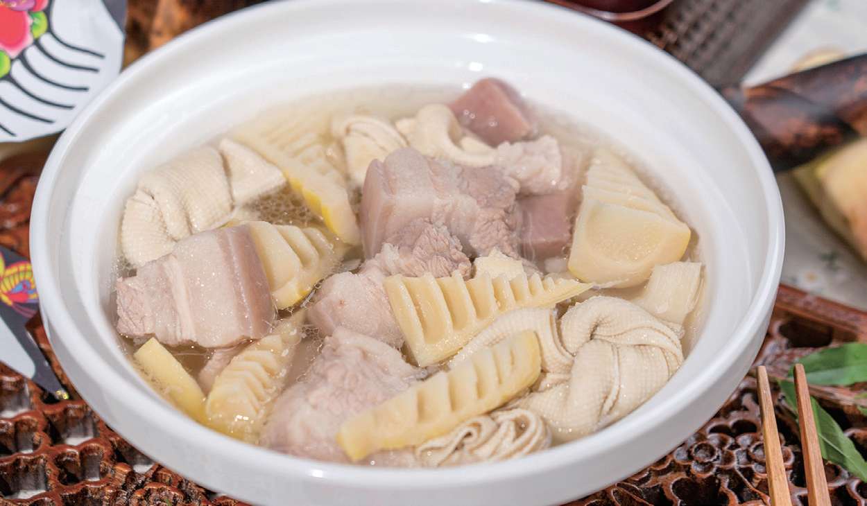 为着这美好的画面,今日添了一篮子新鲜樱桃,又将天目山的鲜笋佐以上海咸肉、土猪鲜肉,熬成一锅“腌笃鲜”,这是整个春天里江南人餐桌上必不可少的“春汤”,鲜美至极的味道只消尝上一口,无需饴糖,便好似春水浸心,甘之如饴。
