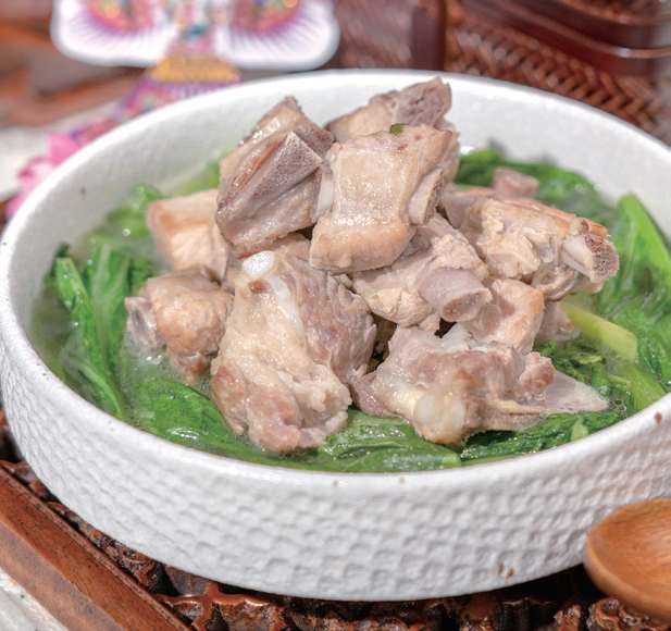 回到故乡潮汕,我们从小认得的“春菜”并非以上各种,而是一种介于菜心与芥菜之间的叶菜,兼得芥菜的甘苦与菜心的清甜。在崇尚好意头的潮汕人心中,“万物回春”的名字决定了春菜的江湖地位。但凡潮汕餐厅,菜单上都会有“春菜煲”,肉排、咸骨、丸子等都是它的好搭档。春菜吸油,不管和多么油腻的食材拍档在一起,始终保持清新爽脆,独特的菜香也从不曾被任何肉味盖过,反而是借肉食之丰腴,提升了自身的香气。