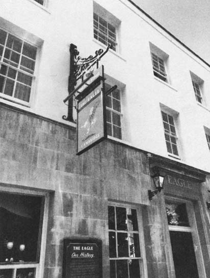 “老鹰”酒吧距离卡文迪许实验室仅百步之遥,于1667年在本尼特街北侧开业。当时的名字为“老鹰与小孩”(the Eagle and Child),酒吧的主要特色为“一便士的三加仑啤酒”(beer for three gallons a penny)。从那时起,这里就一直是剑桥大学学生们最喜爱的饮酒场所。二战期间,“老鹰”酒吧曾是驻扎在附近的皇家空军部队的非正式总部。酒馆一个房间的墙上画有巨幅涂鸦和空军中队编号,现已斑驳陆离。一位不知名的飞行员甚至在天花板上装饰了一幅画,画中是一位身材丰满、衣着暴露的女性。