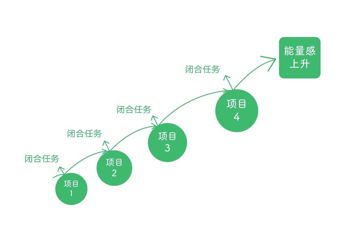 获得能量感的路径有很多种,我们在后文中会详细介绍。这里来说一个关键: 闭合任务回路(close the loop) 。
