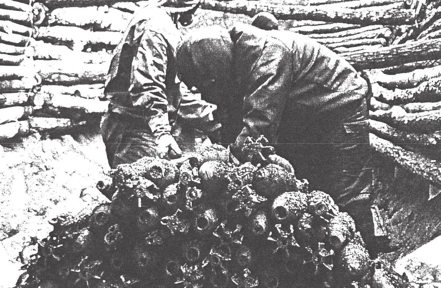 战后50年的岁月中,因日军遗留下来的毒气武器就使得2000余名中国人受害。这些在建筑工地现场、河底、农家庭院等处发现的毒气武器,被中国政府先后运到了吉林省敦化市一座远离人烟的山里。这些毒气弹就是当年日军所遗留下来的毒气武器,直到战后50年,这些原日军士兵还像没有发生什么似的。