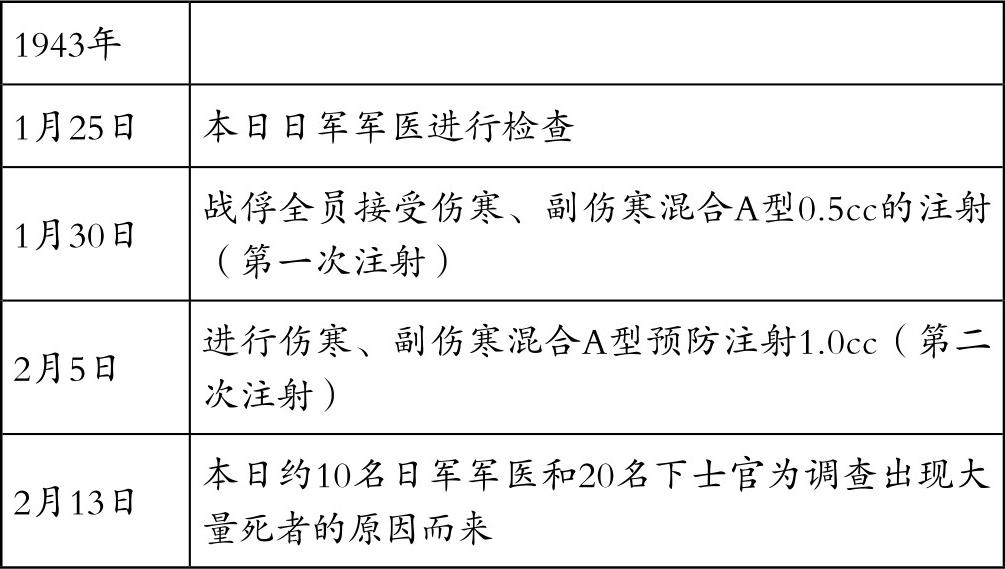 (1)1944年,日军第八师团防疫给水部队制订了撤出菲律宾岛后实施“霍乱作战”的计划(该计划是否实施尚未确认)。