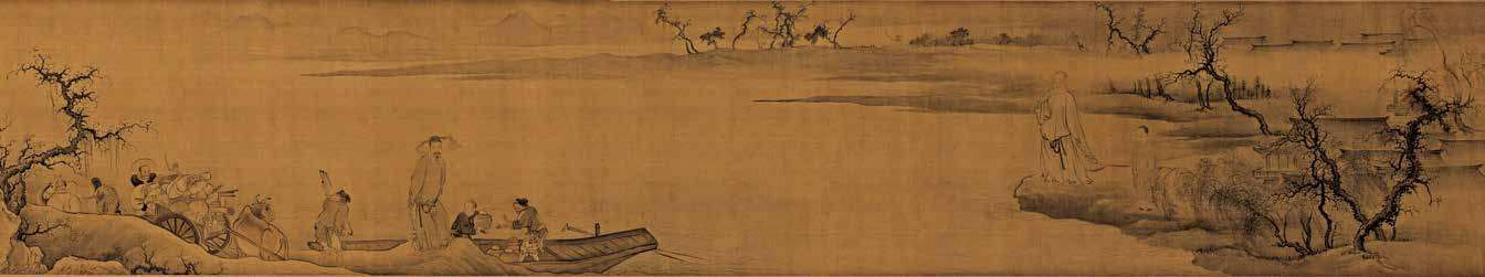 清代画家禹之鼎的《移居图》,表现文人高士向往自然、归隐田园的情景。近景之下,承载庞杂器物的工具不过牛马车船;远景之外,孕育生灵万物的天地终归缥缈虚无。
