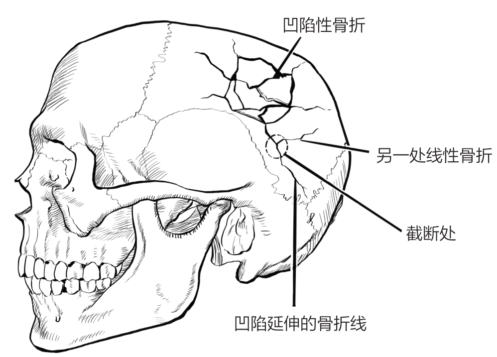 “表皮有一处挫裂创,创缘有镶边样挫伤带,下面是一处凹陷性、粉碎性的颅骨骨折。”周满说,“只能说是钝器,伤口周围看不到棱角留下的痕迹,所以我更倾向于是没有棱角的钝器,比如说奶头锤什么的。不过这一下,力度可是真够大的。”