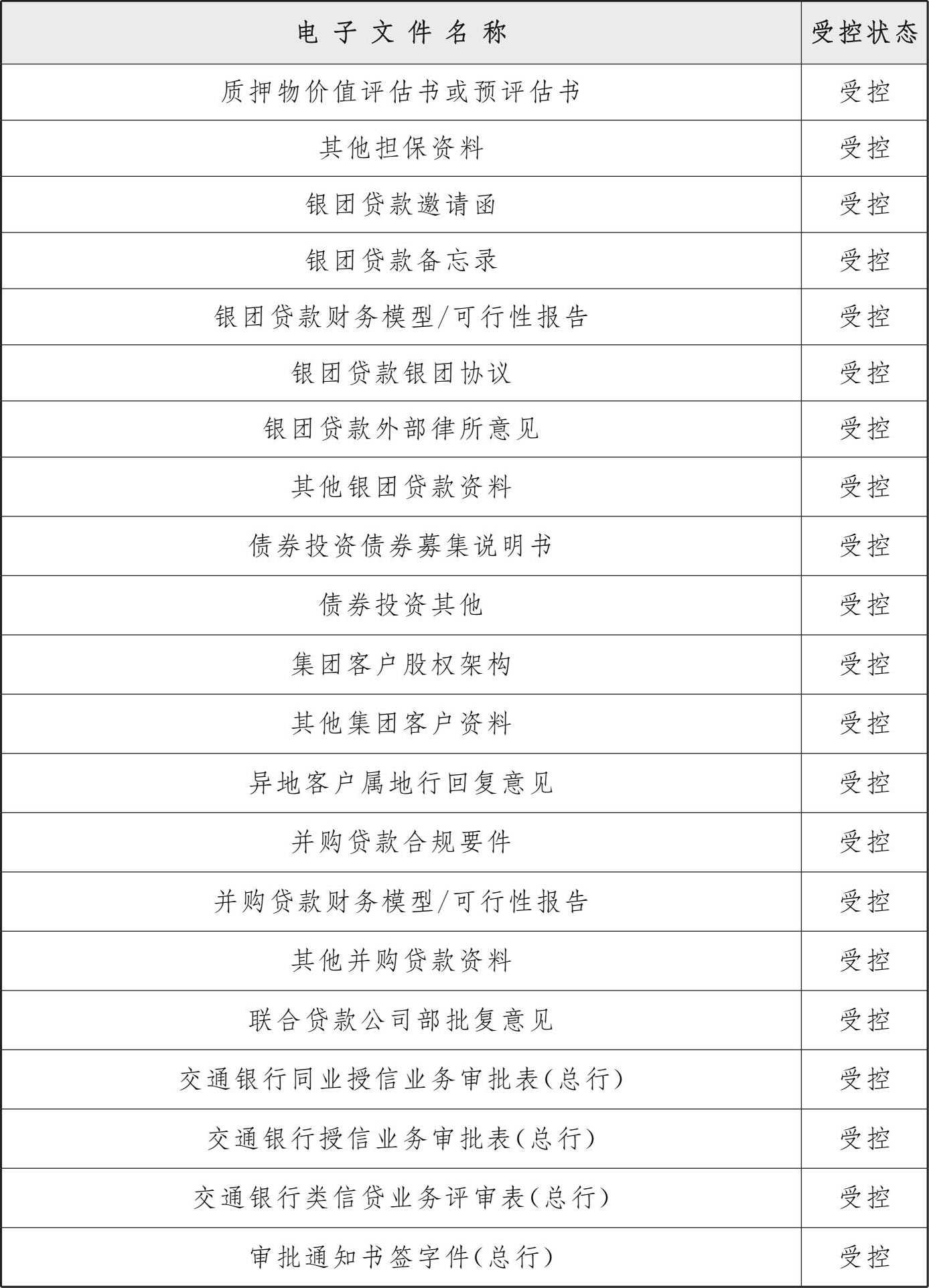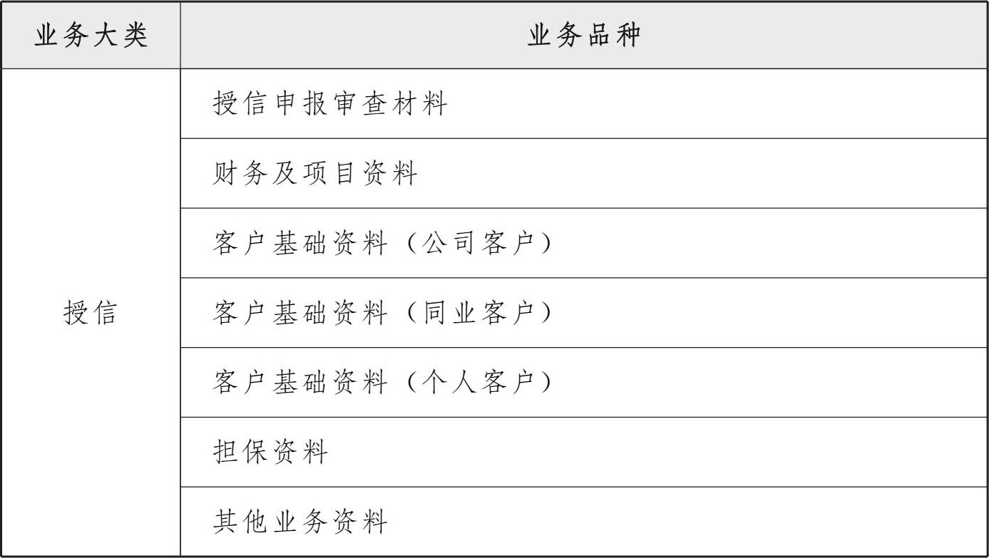 表6 交通银行授信审批系统档案分类